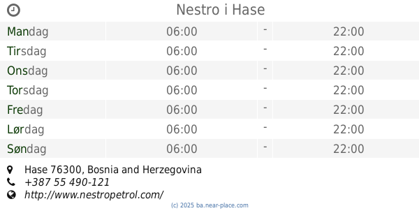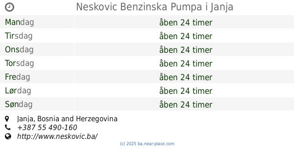 | Mandag | åben 24 timer | |||||