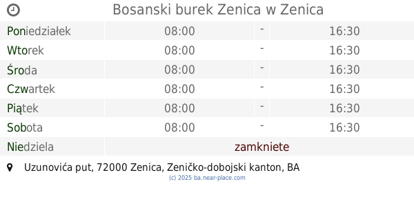 | Niedziela | zamkniete | |||||